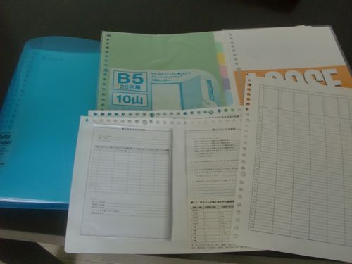 ほぼ日に記録する気満々だったんですが、カズンくらいのスペースじゃないと厳しいかなと思い、自作しました。 キャン・ドゥでバインダー、無地のルーズリーフ、インデックスを購入。 週間バーチカルのスケジュールのテンプレートを検索し、ルーズリーフに印刷。ミルクや排泄、睡眠記録を書くつもり。 育児本の記録ページもコピーし、ルーズリーフに貼り付けてコピー。 ルーズリーフのサイズは、A5 が手軽且つ、そこそこの大きさで好きなんですが、無地のルーズリーフが B5 しかなかったので、B5 にしました。後悔しそうな選び方という気が、しないでもありません。(笑) どの程度続くかわからないので、とりあえず1ヶ月分くらい用意しています。 両面コピー機能がないから、何枚の紙を無駄にしたか。 ノートはもう1つ、買っておいた方が良さそうです。 PR |