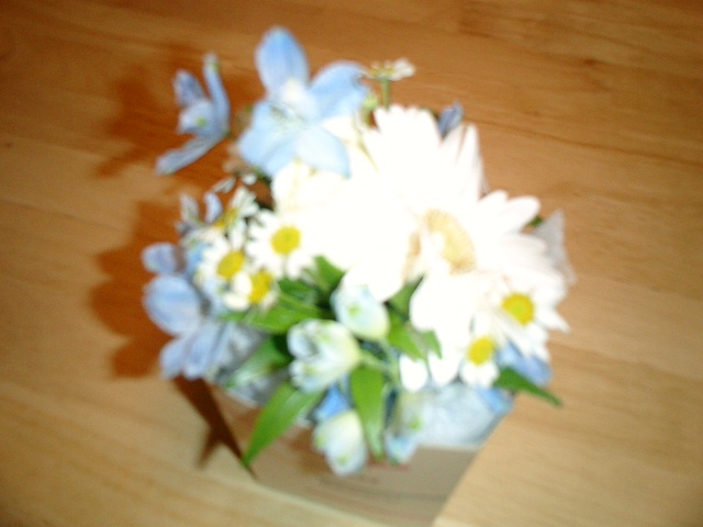 今回の花は白とブルー。涼しげで夏っぽい(年末のような寒さです)。