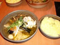 しかし思わぬ休み。ふたりでランチでも、ということで久々のスープカレーは初めて行く VOYAGE に決定。 わたしは、喜茂別産ハーブ豚のしゃぶしゃぶを選択。あっさりスープ、辛さ2番、トッピングは舞茸ハーフとチーズフォンデュ入り餅。 スープが2種類選べて、野菜も微妙に異なるあたり、こだわりを感じます。どちらかというと、濃厚の方が好みかな。でも野菜は、あっさりの方が好きです。 ライスは今まで食べた中で、1番パラパラしていました。 |